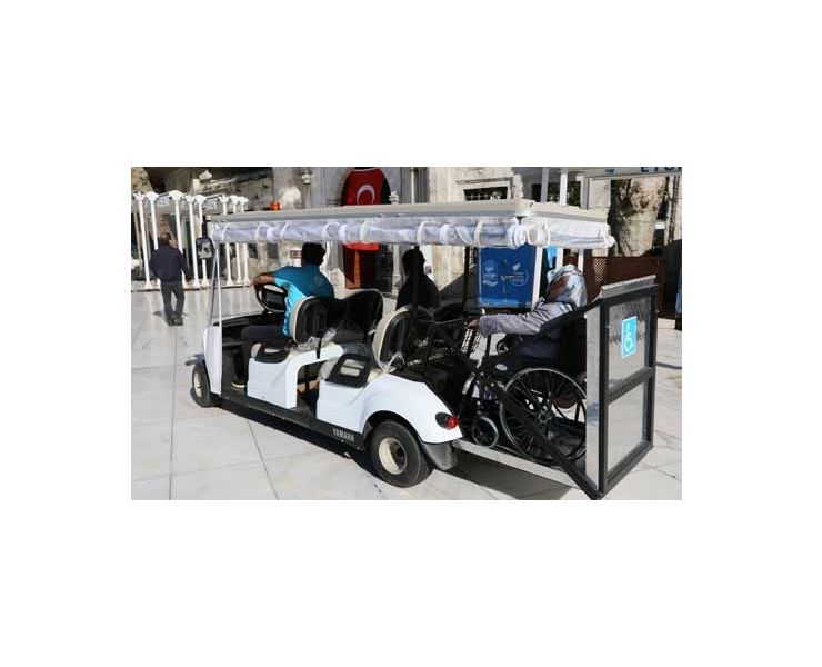 Yürümekte zorlanan yaşlı ve engelliler için gerçekleştirilen bu hizmet dünyanın dört bir tarafından Eyüp Sultan Hazretleri'ni ziyarete gelen yerli ve yabancı turistlerin de ilgi odağı oluyor.