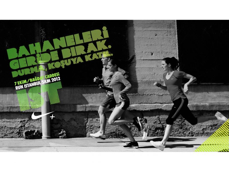 Nike, dünya üzerindeki 32 ülkede gerçekleştirilen “Nike Run” koşuları kapsamında, bahaneleri geride bırakıp koşmak isteyen herkesi, 7 Ekim’de İstanbul Bağdat Caddesi’nde yapılacak 5 km’lik Run Istanbul koşusuna davet ediyor. Nike’ın koşuyu eğlenceye dönüştüren Nike+ uygulamasıyla mükemmel bir deneyim yaşatacak Run Istanbul koşusuna katılmak isteyenler, www.runistanbul.com adresinden ön kayıt yaptırabiliyor. Kesin kayıtlar ise 14 Eylül’den itibaren Nike’ın İstinyePark, Bağdat Caddesi, Beyoğlu, Palladium, Forum İstanbul ve Akmerkez mağazalarından yapılabiliyor.