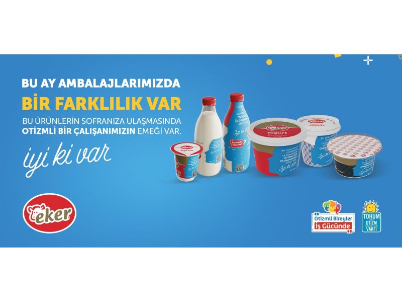 Türkiye'yi 45 yıldır sağlıklı, güvenli, lezzetli süt ve süt ürünleri ile buluşturan Eker, 2 Nisan Dünya Otizm Farkındalık Günü kapsamında sevilen ürünlerinin ambalajlarında bir farklılığa gidiyor. Ürünlerinin ambalajlarını otizmli çalışanlarına teşekkür ettiği bir tasarımla değiştiren Eker, yılın bu günlerinde otizm konusunda yaratılmaya çalışılan farkındalığa katkı sağlamayı hedefliyor. Otizm Farkındalık Ayı olan nisan ayında raflarda olacak özel tasarımlı ambalajlarda; “Bu ürünün sofranıza ulaşmasında otizmli bir çalışanımızın emeği var. İyi ki var!” mesajını veren Eker, otizmli çalışanların üstün odaklanma kabiliyetleriyle üretime olan katkısına dikkat çekiyor.