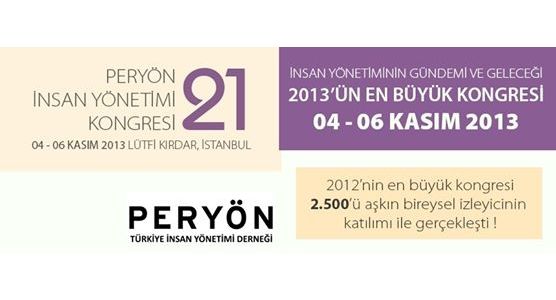 PERYÖN 21. İnsan Yönetimi Kongresi, 5-6 Kasım 2013’te İstanbul Lütfi Kırdar Kongre ve Sergi Sarayı’nda düzenleniyor. Kongre, 50’ye yakın oturumda, 2 bin 500’ü aşkın profesyoneli ve 150’den fazla uzman konuşmacıyı bir araya getirecek. İnsan Yönetimiyle ilgili gelişmelerin ve eğilimlerin mercek altına alınacağı kongre, katılımcı, konuşmacı ve oturumcu sayısına göre Avrupa’nın en büyük kongresi olma niteliğini taşıyor.