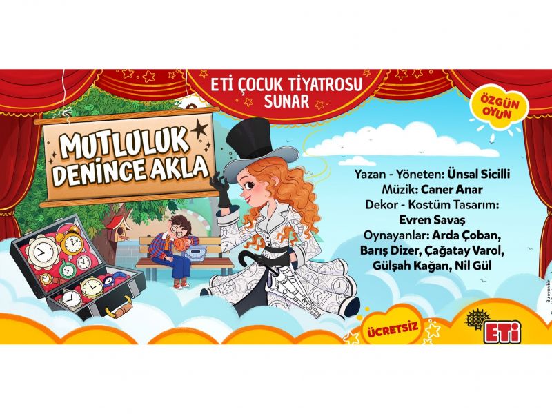 Türkiye’nin en uzun soluklu sosyal sorumluluk projelerinden biri olan Eti Çocuk Tiyatrosu, 23. yılında çocukların kişisel, sosyal ve kültürel gelişimlerine katkı sağlamaya devam ediyor. Bugüne kadar yurt içinde ve yurt dışında 3 milyona yakın çocuğun fırsat eşitliği içinde tiyatro ile buluşmasını sağlayan Eti Çocuk Tiyatrosu, 2023 sezonunda ilk özgün oyunu "Mutluluk Denince Akla" ile izleyicisiyle buluşuyor.