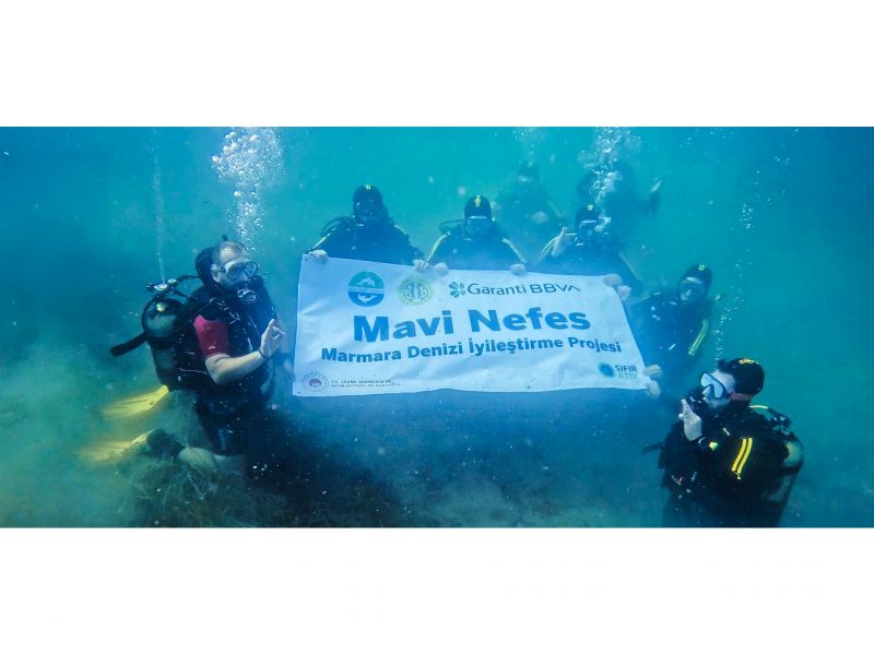 Garanti BBVA ve TURMEPA iş birliğiyle yürütülen Mavi Nefes Projesi’nin 5’inci yılında Marmara Denizi’ndeki baskıları tespit ederek iklim değişikliğine karşı dirençli hale getirmek amacıyla başlatılacak olan bilimsel projenin ilk deneme dalışı gerçekleştirildi. Proje kapsamında İstanbul Üniversitesi’nin geliştirdiği yeni bir müsilaj temizleme tekniği de kullanıldı. Doç. Dr. Cem Dalyan liderliğinde Burgazada açıklarında gerçekleştirilen Mavi Nefes Marmara Denizi İyileştirme Projesi’nin ilk dalışına Garanti BBVA Su Altı Dalış Kulübü, TURMEPA ve paydaş bilim insanları katıldı.