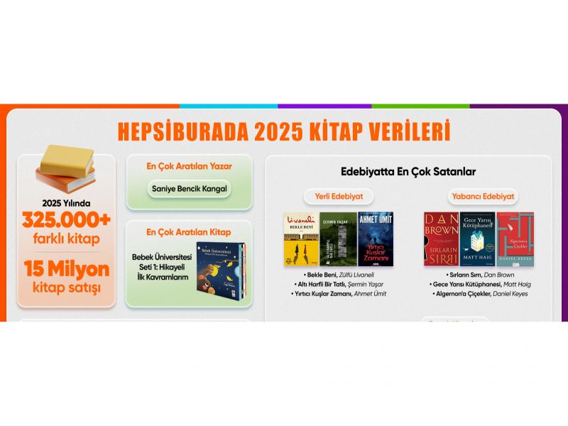 Hepsiburada, 2025 yılına ait kitap satış verilerini paylaşarak ülkenin güncel okuma alışkanlıklarını ortaya koydu. “Türkiye 2025'te ne okudu?” sorusuna yanıt veren veriler; toplam 15 milyon kitap siparişi ve 325 binden fazla farklı eserle, okurların tercihlerini gözler önüne serdi.