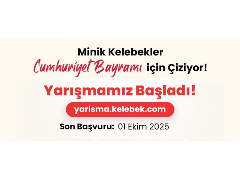 Kelebek Mobilya, yedinci kez çocukları resim yapmaya davet ediyor. Minik ellerin Cumhuriyet’i kağıtlara aktardığı yarışmada malzeme ve teknik serbest olacak. 6-13 yaş aralığındaki tüm çocuklar başvuru adresinden (yarisma.kelebek.com) yarışmaya katılabiliyor.