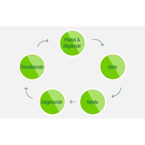 Paydaş katılımı sürecinin en önemli bölümünü paydaşların eğitimler, duyurular, yayınlar ve telekonferanslar gibi çeşitli kanallar aracılığıyla Garanti Bankası’nın sürdürülebilirlik performansı hakkında bilgilendirilmesi oluşturmaktadır. Bu süreci takiben alınan paydaş geri bildirimlerinin ışığında sürdürülebilirlik performansının geliştirilmesi için stratejik önem taşıyan konular belirlenir.