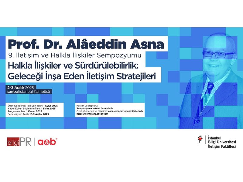 İstanbul Bilgi Üniversitesi İletişim Fakültesi ve A&B İletişim işbirliği ile Prof. Dr. Alâeddin Asna adına bu yıl dokuzuncusu düzenlenen İletişim ve Halkla İlişkiler Sempozyumu “Halkla İlişkiler ve Sürdürülebilirlik: Geleceği İnşa Eden İletişim Stratejileri” başlığıyla 2–3 Aralık 2025 tarihlerinde santralistanbul Kampüsü’nde gerçekleşecek.