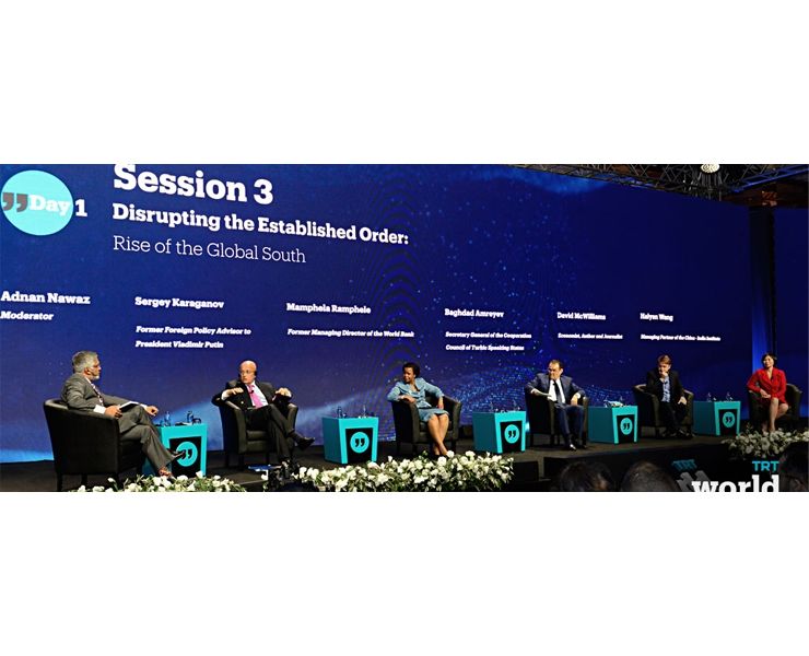 “Müesses Nizama Karşı Yükselen Sesler” temalı, TRT World Sunucusu Adnan Nawaz moderatörlüğünde gerçekleşen üçüncü oturum; Hamid Karzai (Afganistan Eski Devlet Başkanı), Sergey Karaganov (Vladimir Putin’in Dış Politika Eski Danışmanı), Haiyan Wang (Çin Hindistan Enstitüsü Yönetici Ortağı), David McWilliams (Ekonomist, Yazar ve Gazeteci), Mamphela Ramphele (Dünya Bankası Eski Direktörü), Baghdad Amreyev (Türk Dili Konuşan Ülkeler İşbirliği Konseyi Genel Sekreteri) katılımlarıyla gerçekleşti.