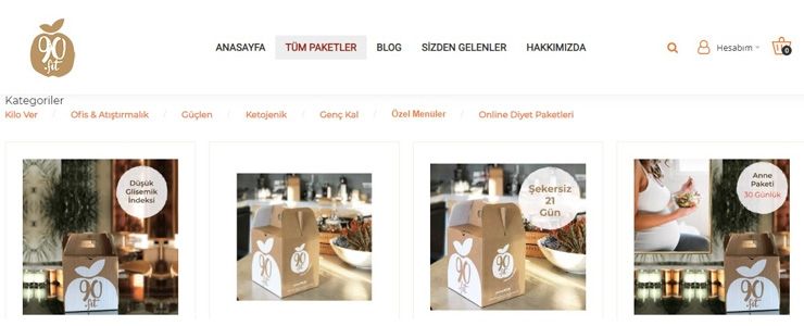 Kullanıcılar www.90fit.com.tr üzerinden sipariş oluşturabiliyor. Yağ yakıcı programlar, detokslar, ketojenik diyet programları , sporcu paketleri ,ofis paketleri, vejetaryen paket, şekersiz 21 gün, düşük glisemik indeksli paket gibi pek çok seçenek arasından dilediğini seçebiliyor. Dilerse kendisi için en uygun kalori ve besin ögesi dağılımını ve programı seçebilmek üzere 90fit diyetisyenleriyle irtibata geçebiliyor. Paketler genel olarak 3 ana 2 ara öğünden oluşuyor.