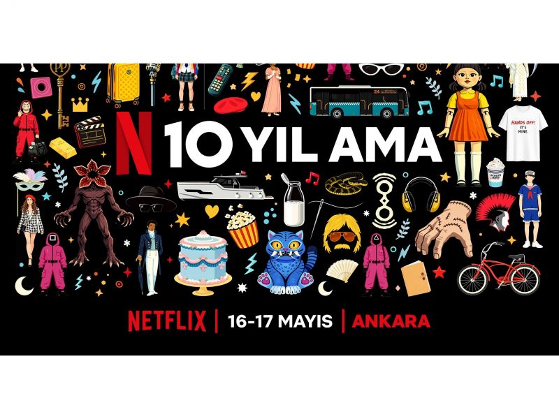 Netflix, Türkiye’deki 10. yılını kutlamak üzere fanlarıyla bir araya geleceği özel etkinlik serisi “N 10 Yıl Ama: Bir Netflix Festivali”ni duyurdu. 16-17 Mayıs’ta Ankara Atlıspor Kulübü’nde gerçekleşecek etkinlikler kapsamında , ziyaretçilere Netflix’in sevilen yapımlarından ilham alan eğlenceli bir keşif ve deneyim alanı sunulacak.